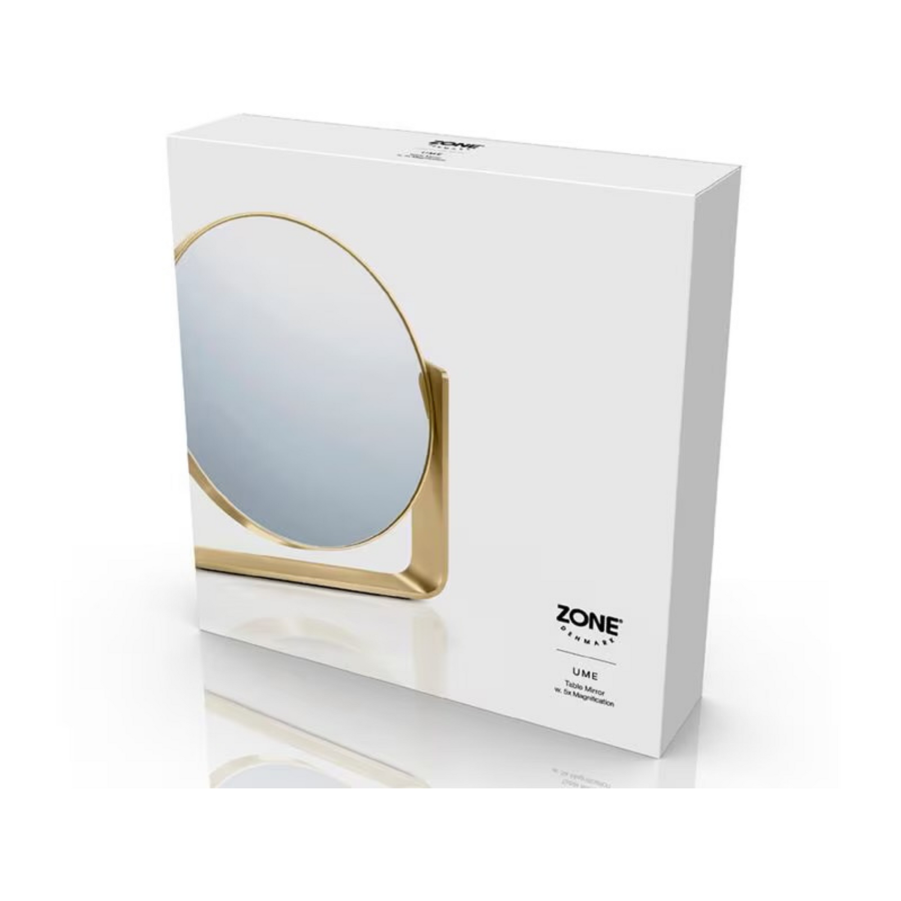 Der Zone Denmark Tischspiegel Ume vereint stilvolles skandinavisches Design mit durchdachter Funktion. Sein warmes, mattes Messing-Finish verleiht deinem Bad oder Schminktisch einen Hauch von Luxus und zeitloser Eleganz.