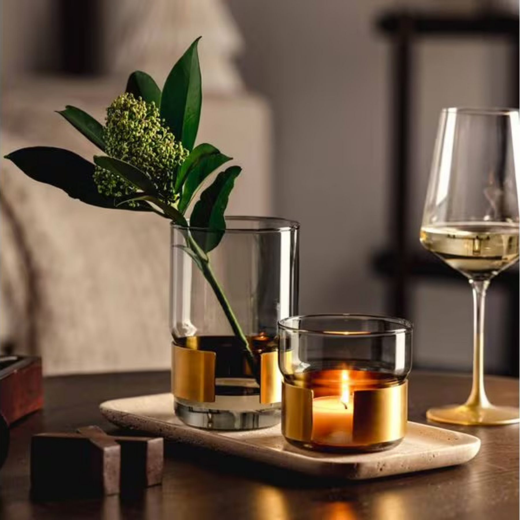 • Hochwertiges Glas – transparente Eleganz mit goldenem Detail