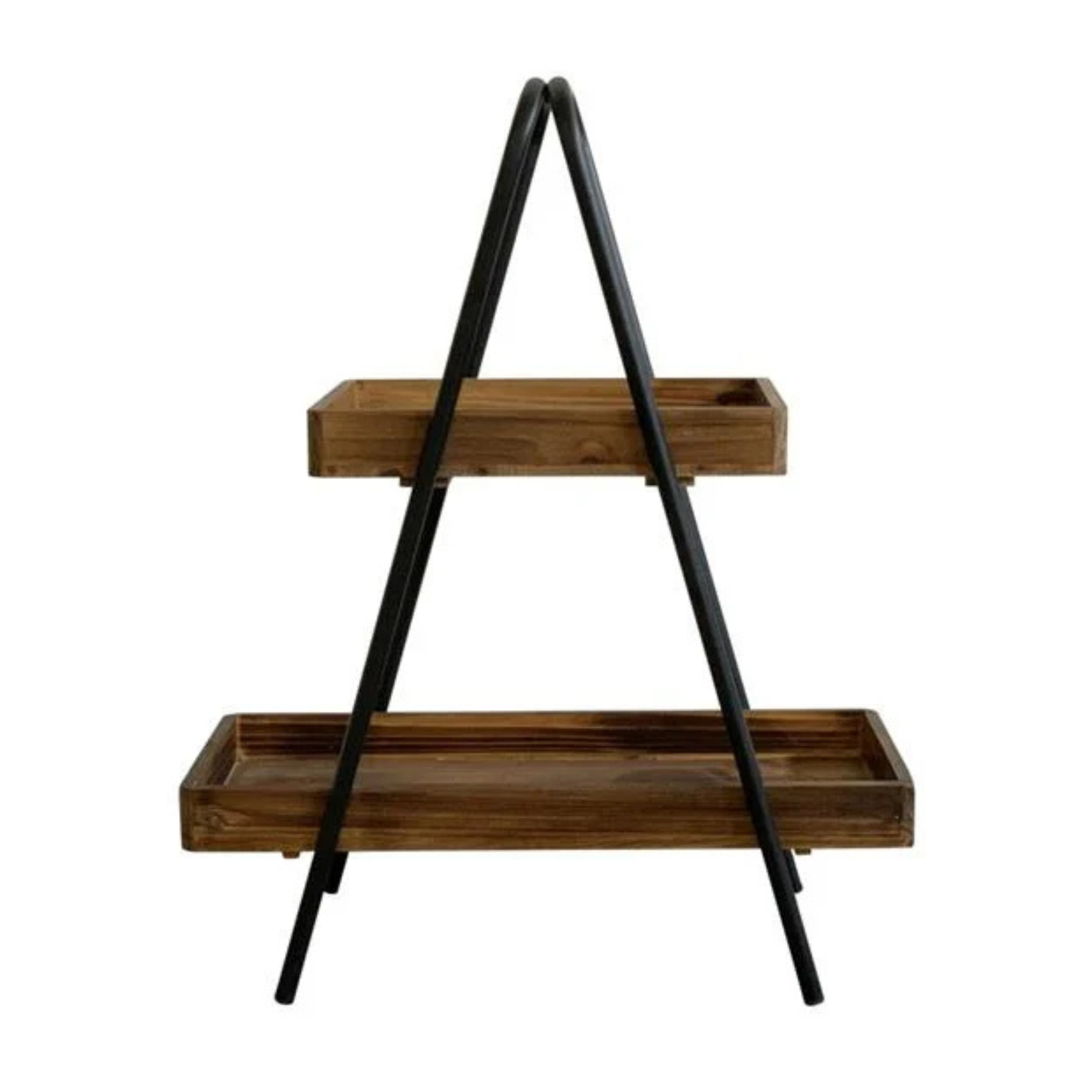 Etagere aus Holz mit schwarzem Metallgestell – 2 Ablageflächen